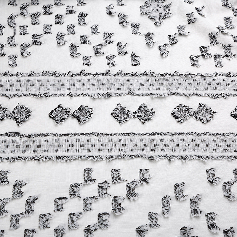 更為復雜的全滌剪花圖案可以加入陽離子原料,在染色過程中,圖案和底面最終可以呈現出兩種不同的色彩對比效果。
