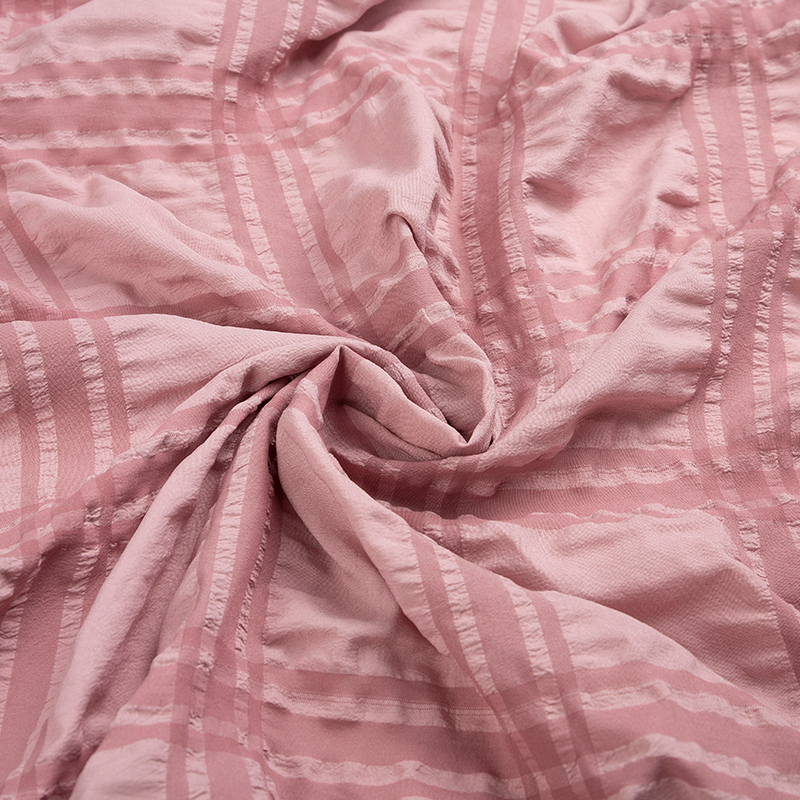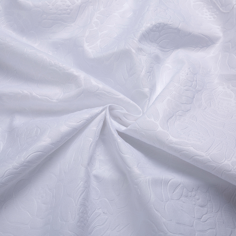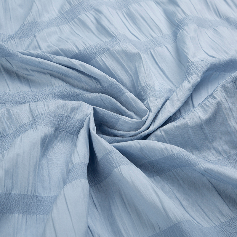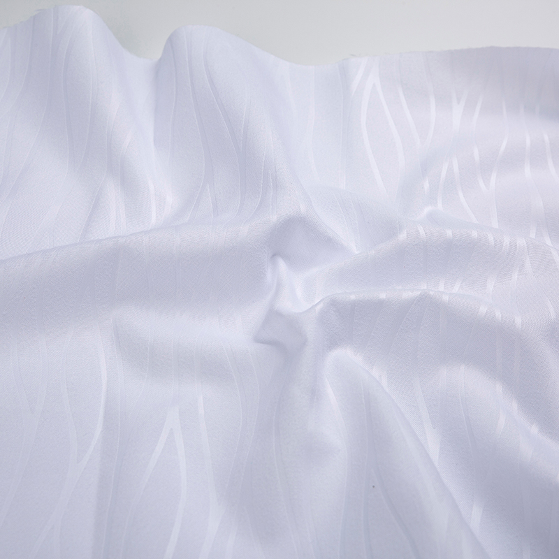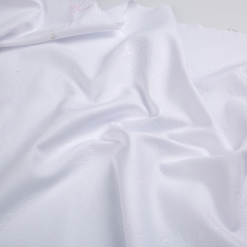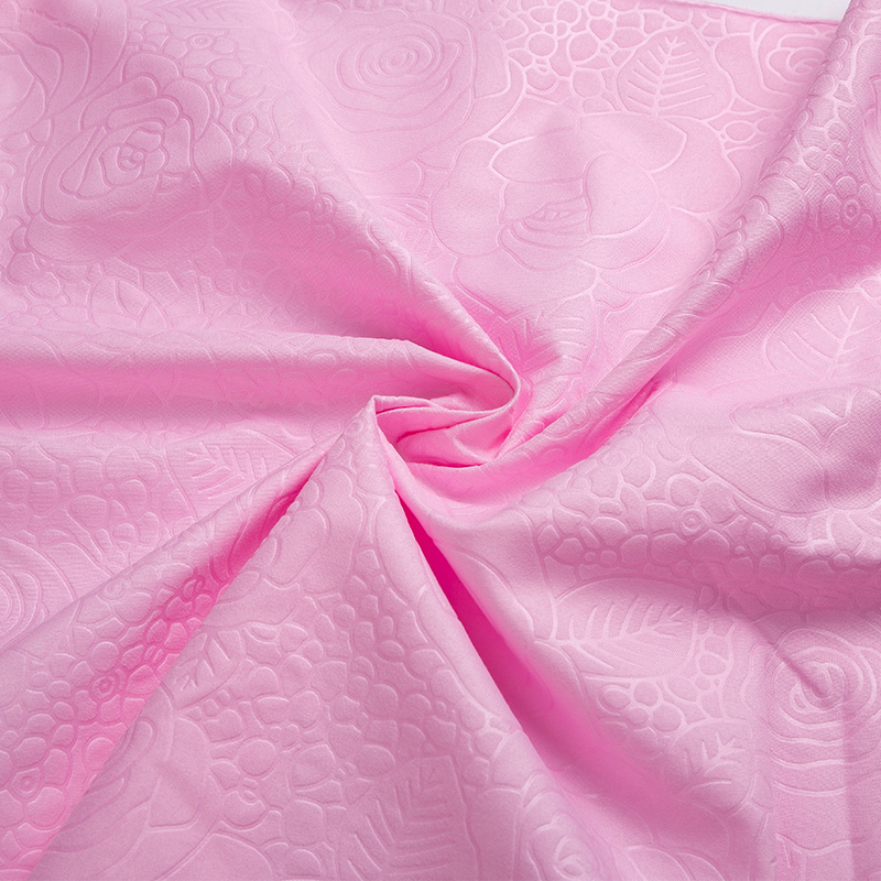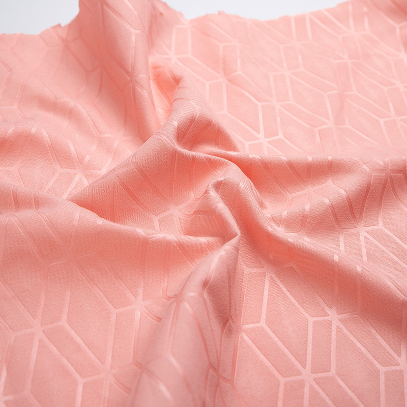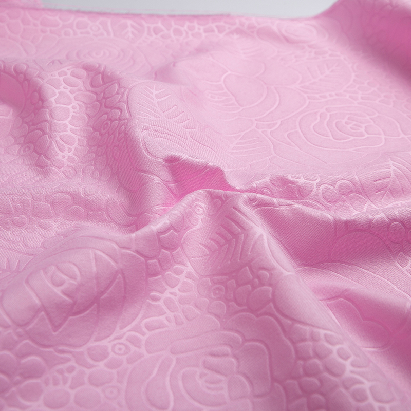 全滌剪花面料是我們公司新開發的產品。這種面料經過復雜的織造工藝和后處理,可以在表面產生凸起的花紋,而且這種花紋永遠不會消失。