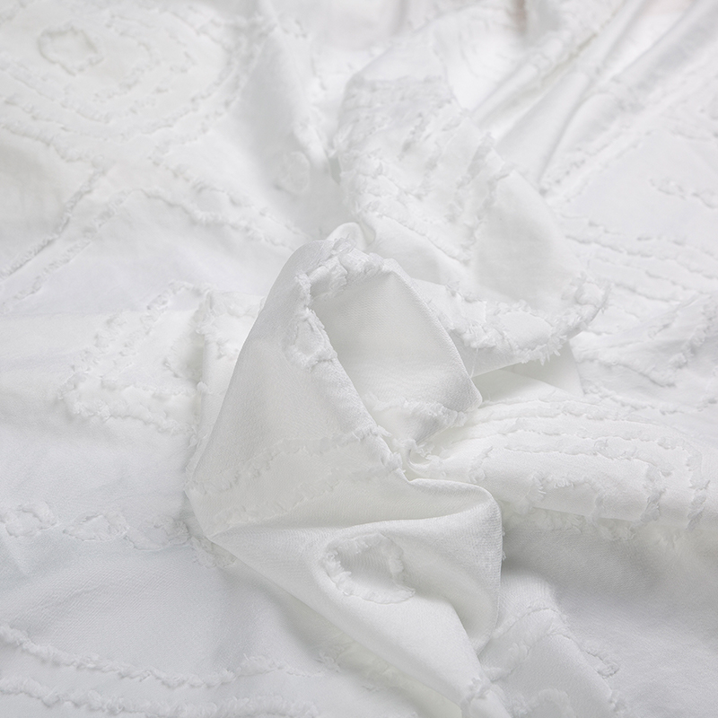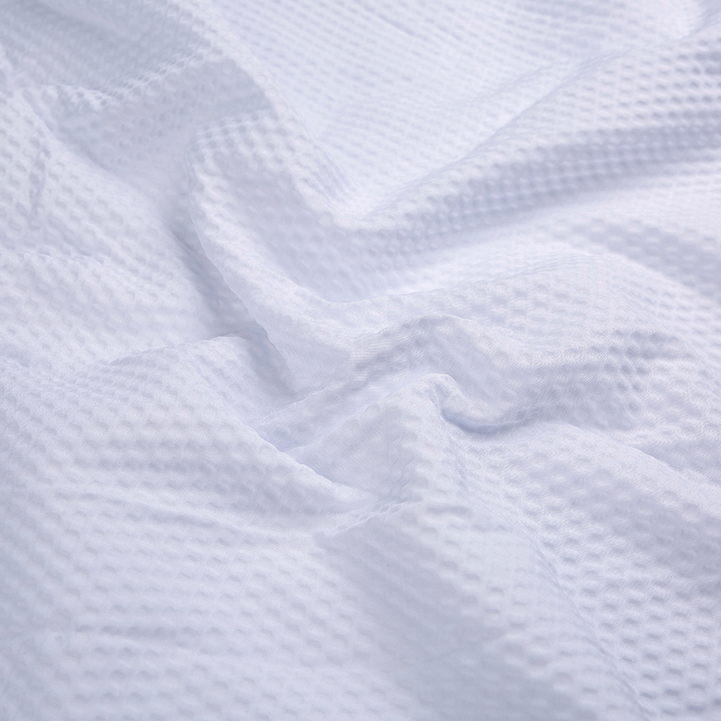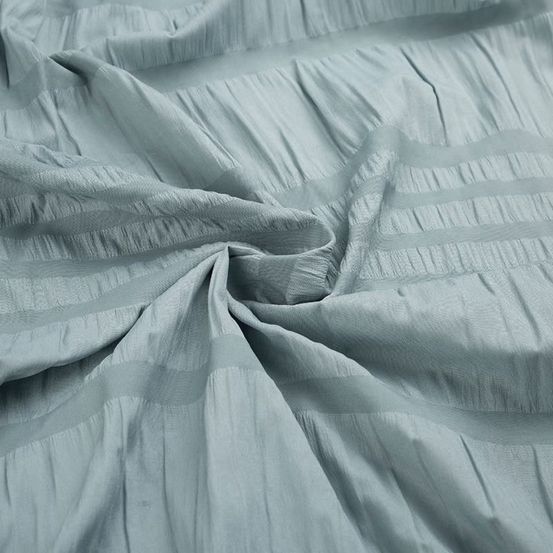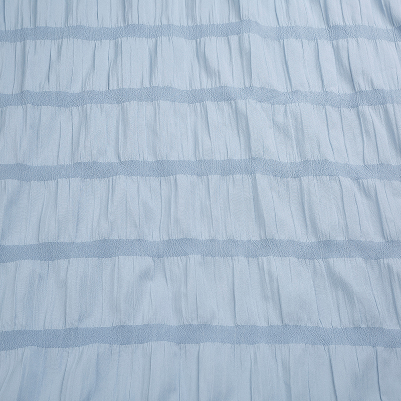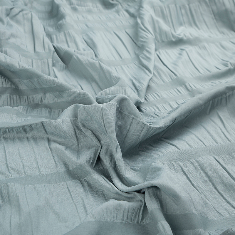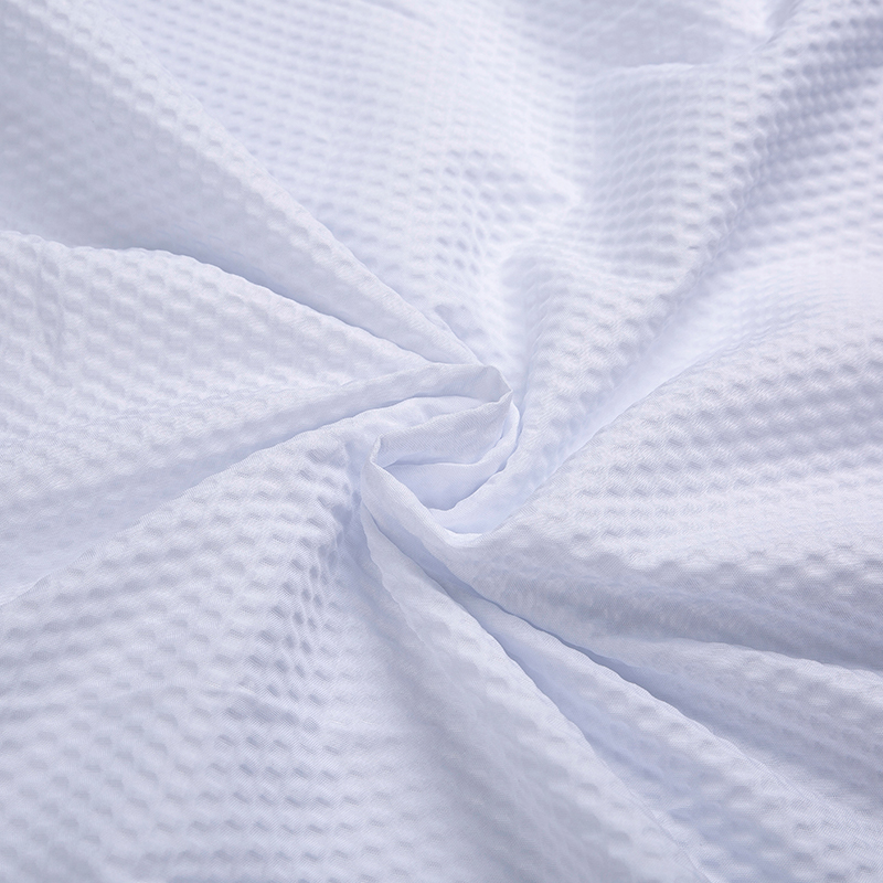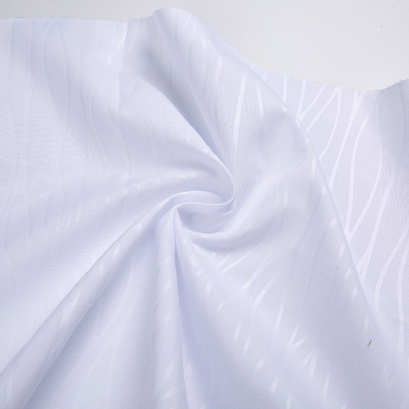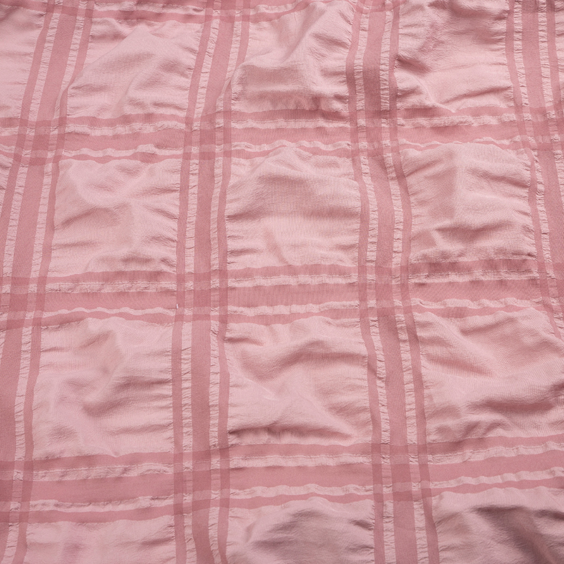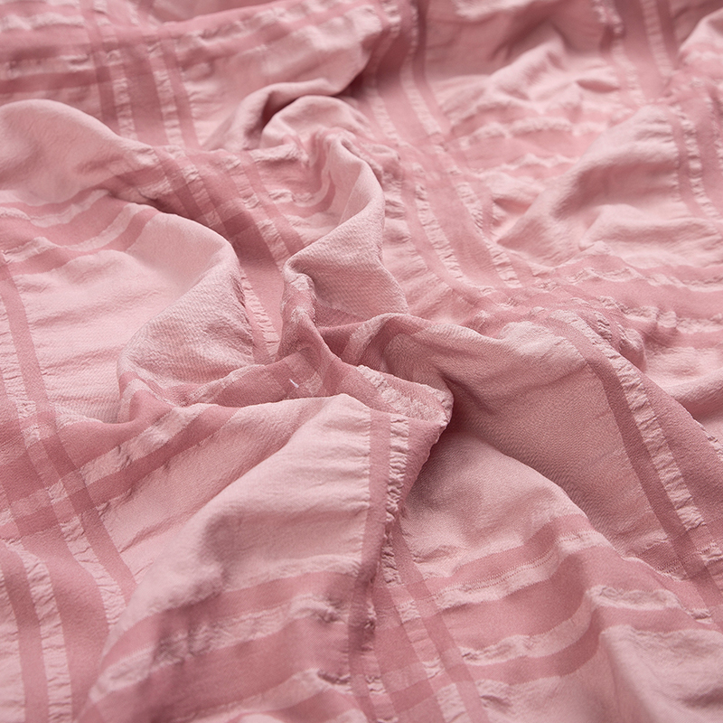 全滌剪花面料是我們公司新開發的產品。這種面料經過復雜的織造工藝和后處理,可以在表面產生凸起的花紋,而且這種花紋永遠不會消失。
